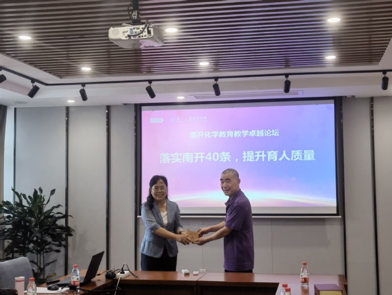930日,“南开化学教育教学卓越论坛”在化学楼南楼会议室隆重举行,李川勇教授作题为“落实南开40条,提升育人质量”报告。杨光明教授为李川勇教授颁发“南开化学教育教学卓越论坛”纪念奖牌。化学学院副院长郭东升主持论坛。