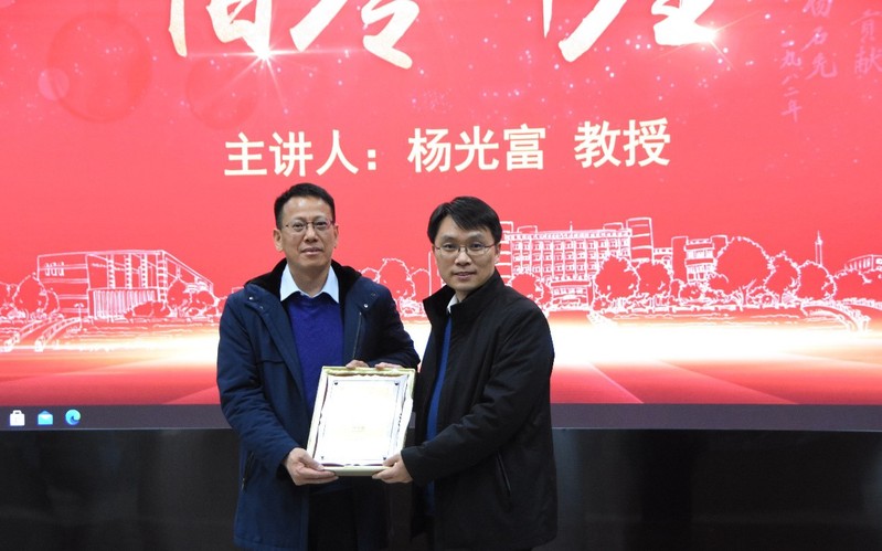 11月26日,南开大学校友、华中师范大学教授杨光富做客伯苓讲座,在八里台校区石先楼学术报告厅带来了以《我是如何与农药结缘的》为题的报告。化学学院院长朱守非主持本次讲座,并为杨光富颁发伯苓讲座证书牌。化学学院众多师生参加了本次讲座。