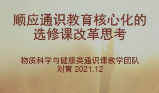 会上,来自医学院的刘寅老师做了“顺应通识教育核心化的选修课改革思考”的报告,详细介绍了“食品文化与健康”这一通识选修课的课程建设情况与课程特色。本着“三全育人”理念,改革课程的不足之处,将唯物主义的思政元素融入课程内容,最终提升学生的素养水平。随后天津市教学名师邱晓航教授和杨光明教授分别对课程建设进行了点评,高度评价了课程建设的成果,也提出了改进和完善的建议。