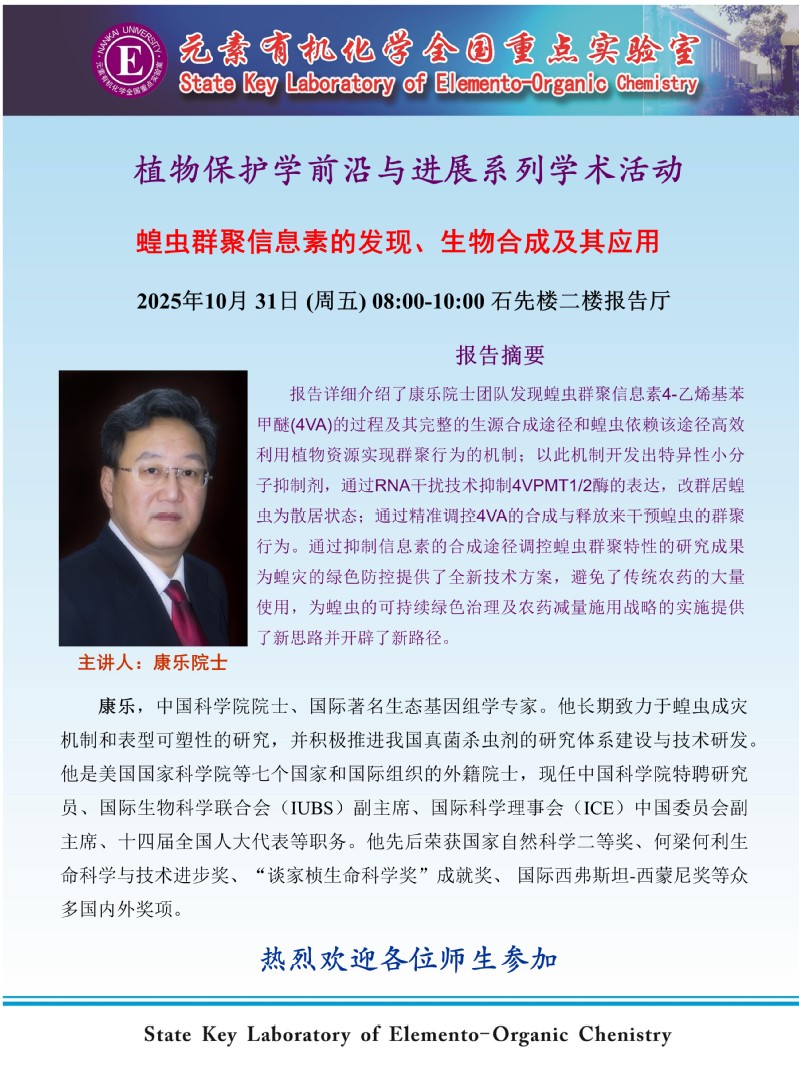 植物保护学前沿与进展系列学术活动:蝗虫群聚信息素的发现、生物合成及其应用