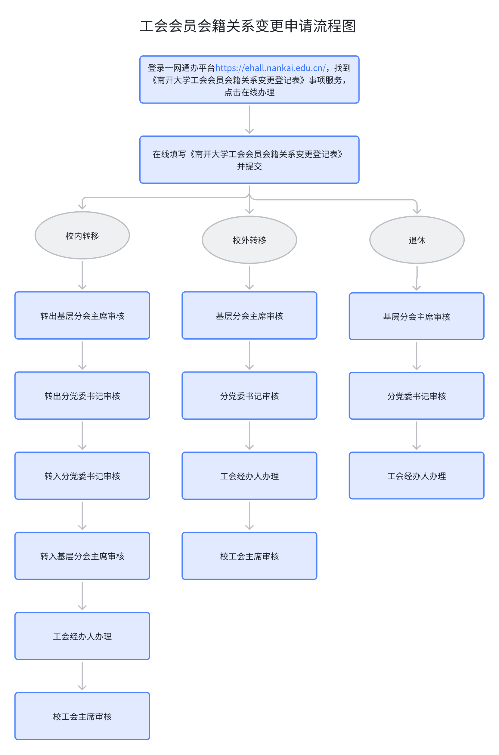 自2025年11月1日起,全面启用线上办理方式。所有新会员入会及会籍转移手续均须通过飞书“一网通办”功能完成。后续校工会将上线会员会籍管理平台“一表通”,请各分会及时关注相关通知。