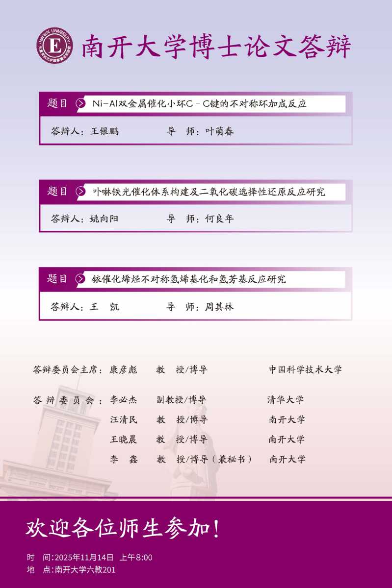 化学学院博士研究生论文答辩 王银鹏 姚向阳 王凯
