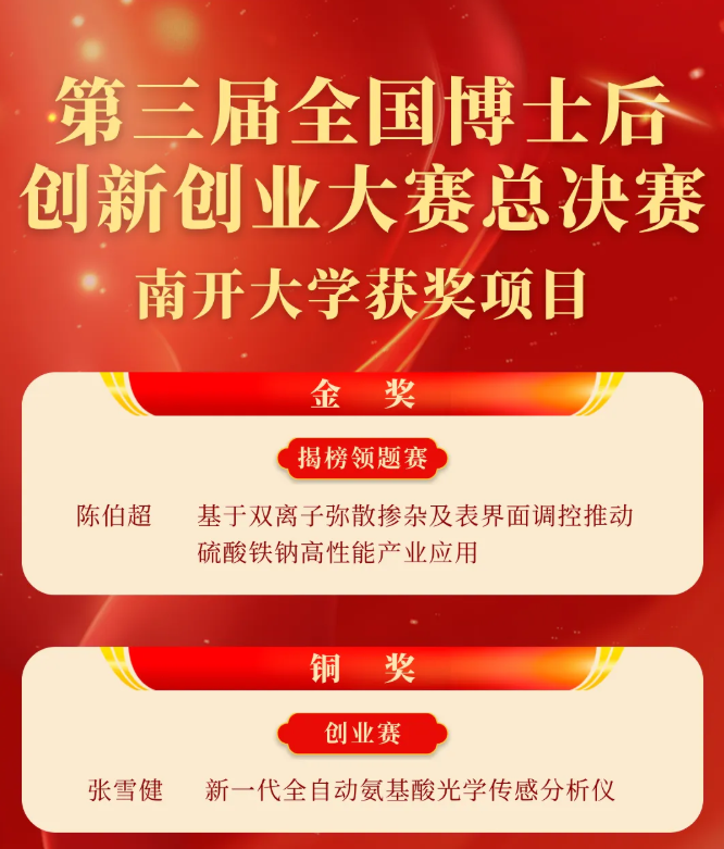 南开化学学院参赛团队在本次大赛中的表现,生动展现了南开博士后以增量提质为目标,聚焦重大需求、深耕科技创新的培养导向。
