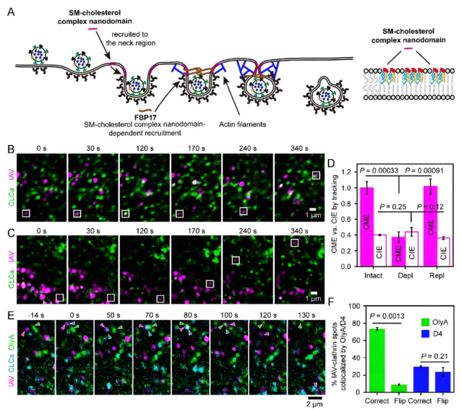 图2. SM-胆固醇复合物纳米域被招募至网格蛋白包被结构以介导IAV内化(图片来源:Acc. Chem. Res.)
