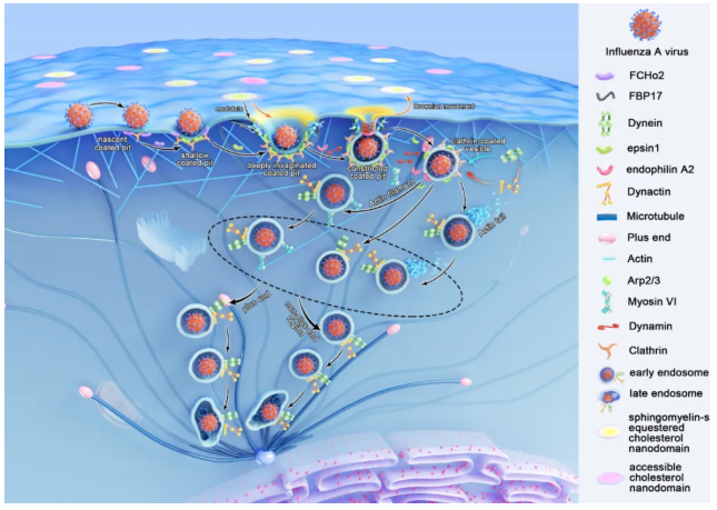 图7. IAV通过CME途径侵染早期的机制(图片来源:Acc. Chem. Res.)