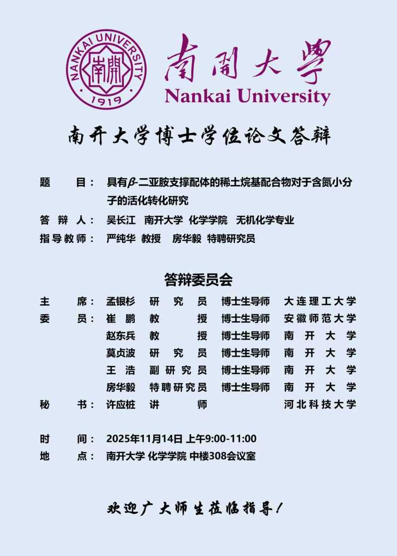 化学学院学术学位博士研究生学位论文答辩 吴长江