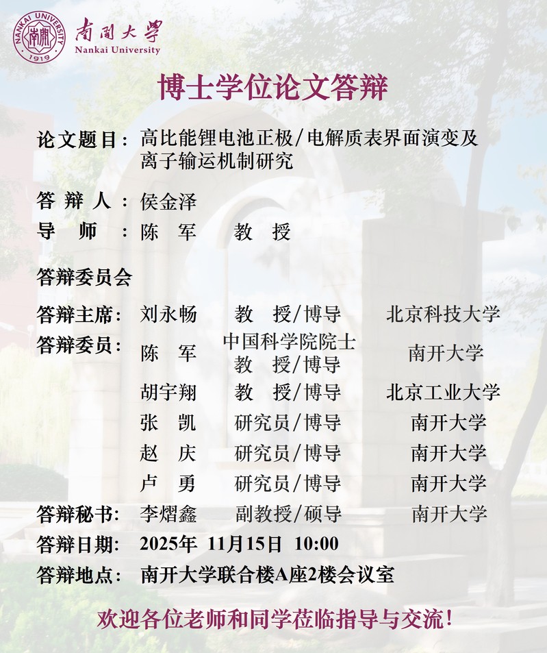 化学学院学术学位博士研究生学位论文答辩 侯金泽