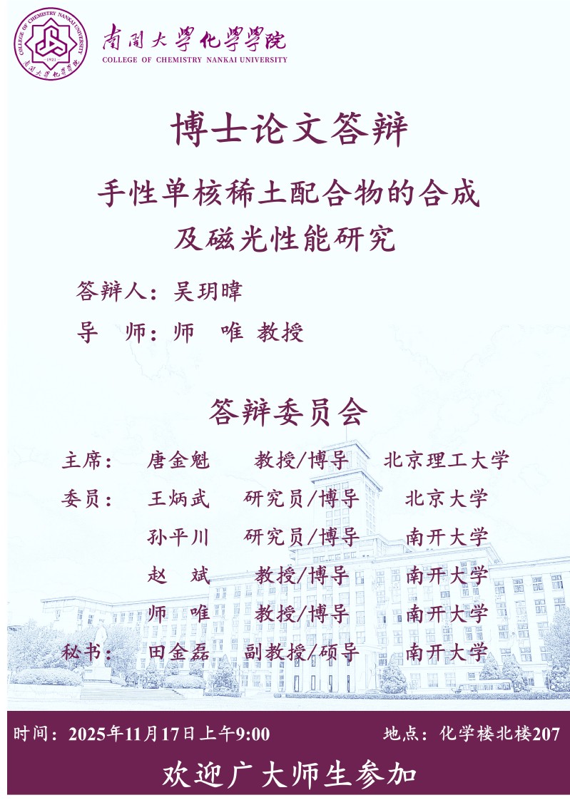 化学学院学术学位博士研究生学位论文答辩 吴玥暐