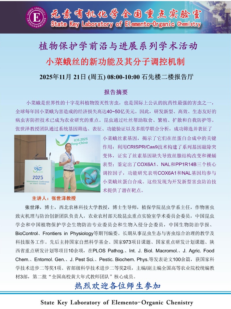 植物保护学前沿与进展系列学术活动:小菜蛾丝的新功能及其分子调控机制