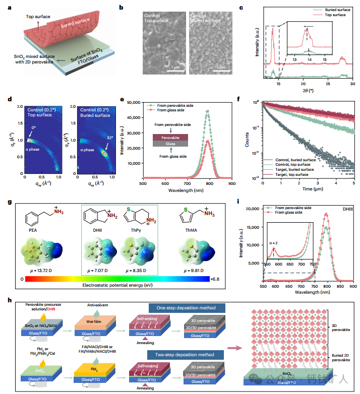 实现钙钛矿薄膜顶部与埋底界面全域均匀结晶,对其光伏潜能的极致释放至关重要,但仍然是一个尚未解决的挑战,特别是埋底界面,相较于顶部表面,结晶较差,导致晶体质量欠佳、缺陷密度提高。