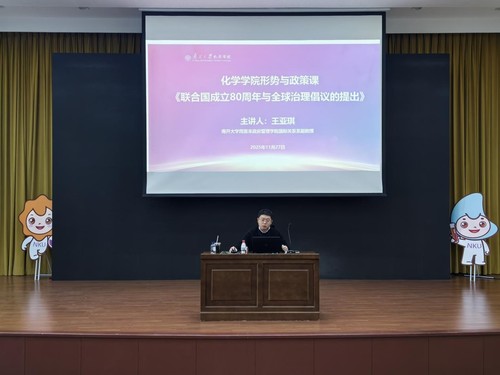 (通讯员:国家兴)为进一步厚植家国情怀,引导学生立足学科特色,树立胸怀家国、放眼世界的大局意识。11月27日,南开大学周恩来政府管理学院国际关系系副教授王亚琪为学院本科生讲授题为“联合国成立80周年与全球治理倡议的提出”的形势政策课。