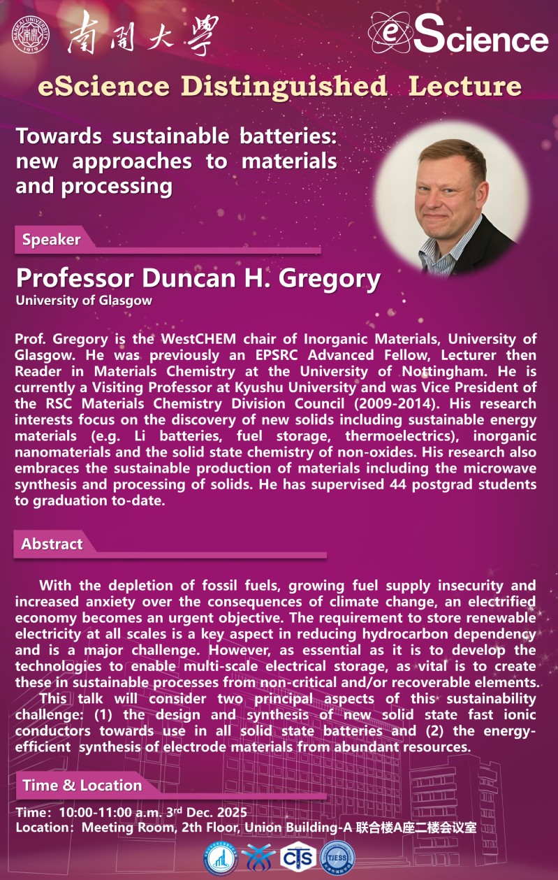 eScience Distinguished Lecture:Towards sustainable batteries: new approaches to materials and processing