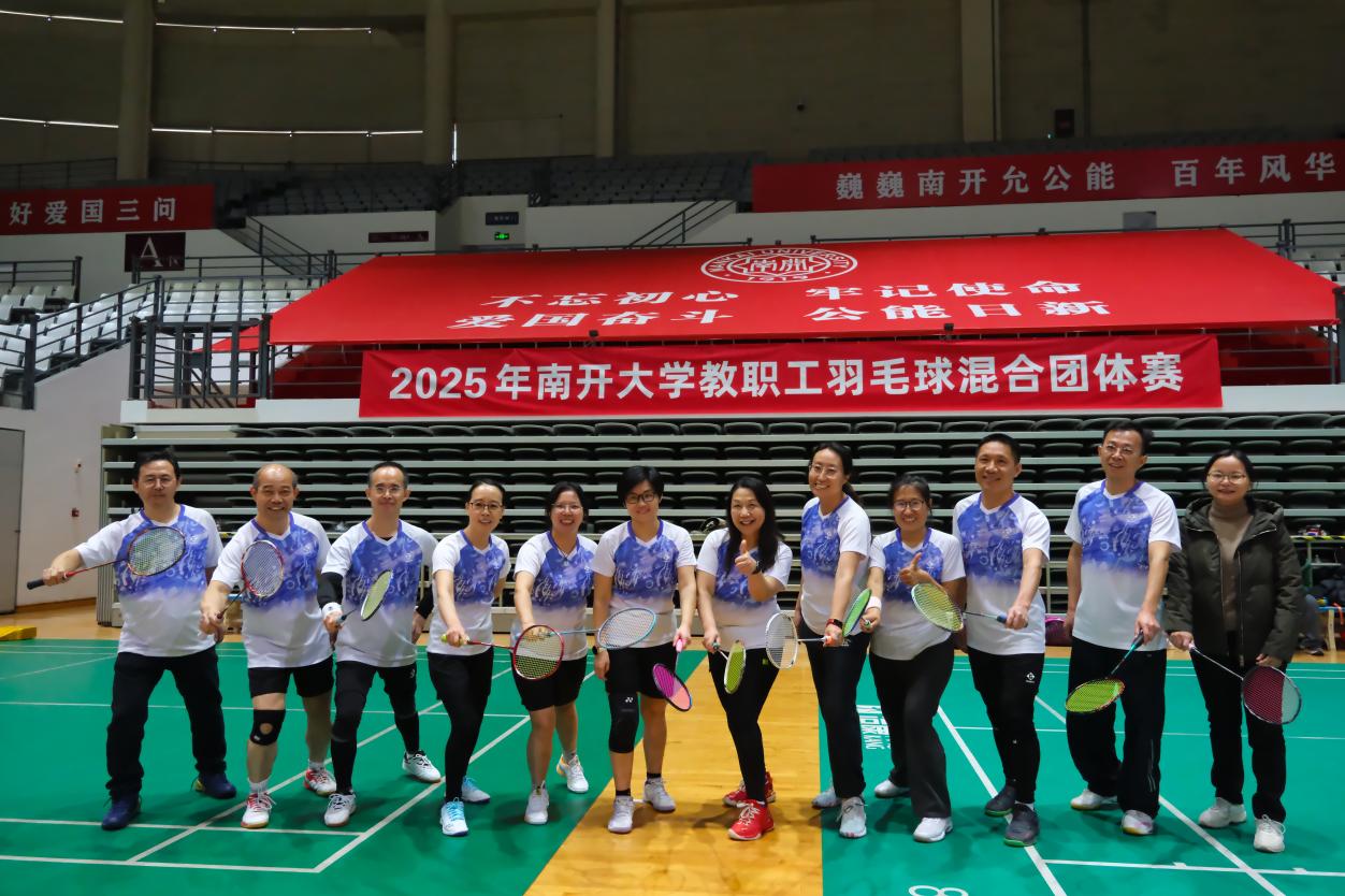 为弘扬南开人“允公允能、日新月异”的进取精神,促进教职工身心健康与团队协作,营造健康阳光、充满活力的校园文化氛围,由南开大学校工会主办、教职工羽毛球协会承办的2025年教职工羽毛球混合团体赛于11月22日在体育馆新馆火热开赛。本次赛事规模创历年之最,24支代表队、232名教职工同场竞技,经过小组赛与淘汰赛的激烈比拼,化学学院二队与机关队并列季军,以拼搏之姿展现了化学人昂扬向上的体育风采。