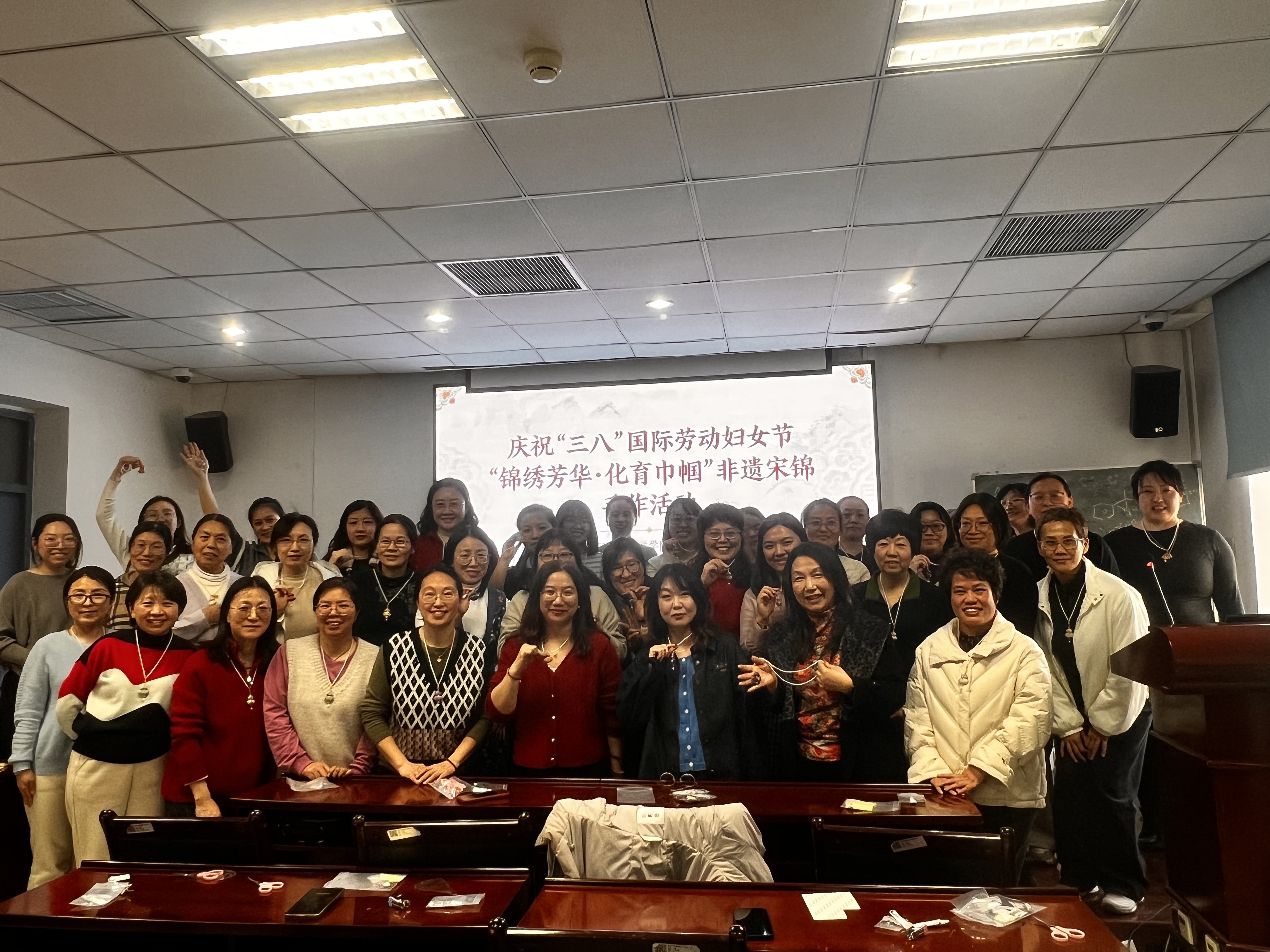 为深入贯彻落实立德树人根本任务,丰富教职工精神文化生活,传承弘扬中华优秀传统文化,在春意盎然的三月,化学学院工会精心策划并组织了“锦绣芳华·化育巾帼”——庆“三八”国际劳动妇女节非遗宋锦手作活动。学院女教职工齐聚一堂,在指尖流转间邂逅千年宋锦之美,于匠心传承中感受传统文化魅力。