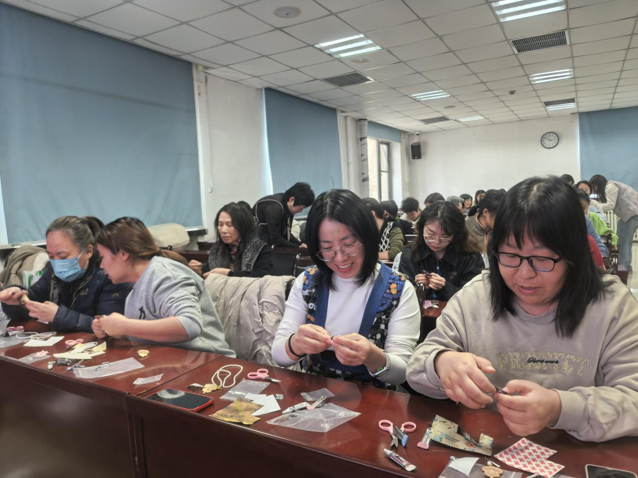 活动伊始,学院工会主席周凯发表了热情洋溢的致辞,向到场的女教职工们致以诚挚的问候与美好的祝福。他表示,宋锦作为承载千年智慧的非遗瑰宝,是中华优秀传统文化的生动载体。此次活动既是学院工会关爱教职工身心健康、丰富精神文化生活的暖心举措,也是推动传统文化进校园、厚植文化自信的有益实践。他希望大家能在本次活动中放慢脚步、静心创作,在感受手工之美的同时品味非遗之韵,既能收获专属的手作佳品,也能在忙碌的科研教学工作之余舒缓身心、凝聚力量,以更饱满的热情投入到学院发展与人才培养事业中。