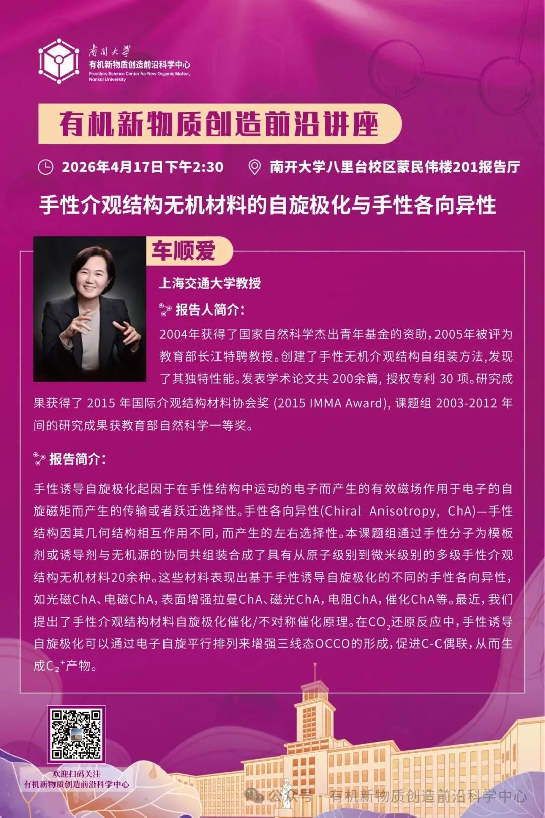 有机新物质创造前沿讲座:手性介观结构无机材料的自旋极化与手性各向异性