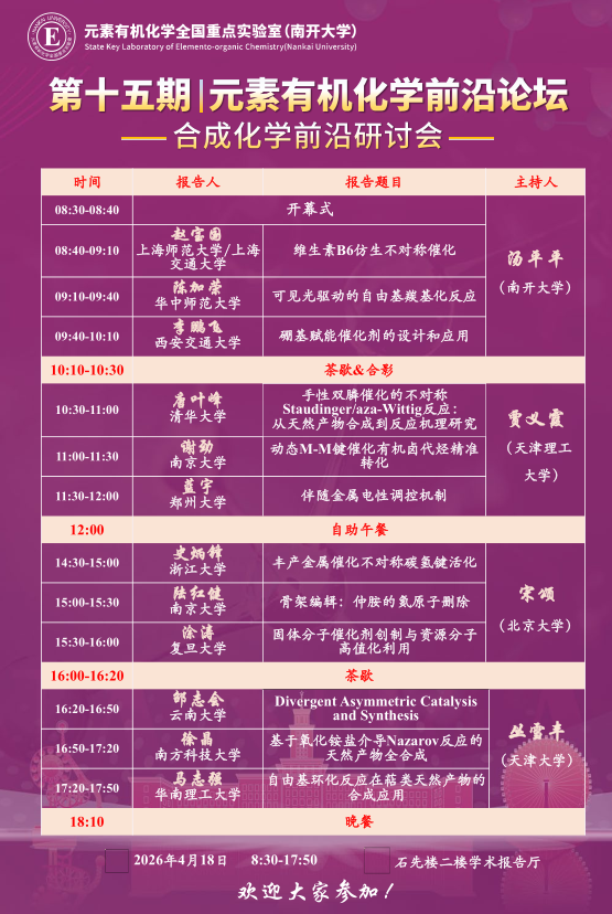 第十五期元素有机化学前沿论坛:合成化学前沿研讨会