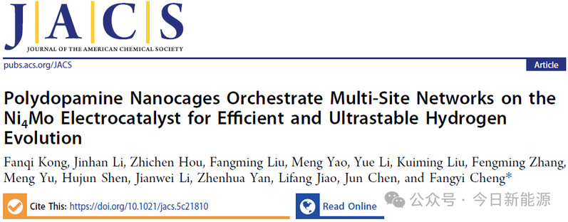 2026年04月10日,南开大学陈军院士、程方益团队在Journal of the American Chemical Society期刊发表题为“Polydopamine Nanocages Orchestrate Multi-Site Networks on the Ni4Mo Electrocatalyst for Efficient and Ultrastable Hydrogen Evolution”的研究论文,团队成员孔繁琦为论文第一作者,程方益为论文通讯作者。