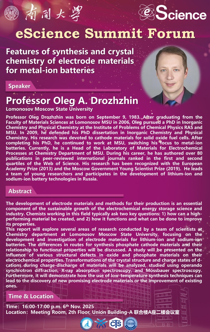 eScience Summit Forum:Features of synthesis and crystal chemistry of electrode materials for metal-ion batteries