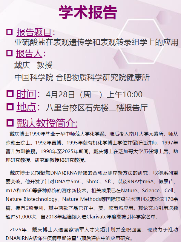 学术报告:亚硫酸盐在表观遗传学和表观转录组学上的应用