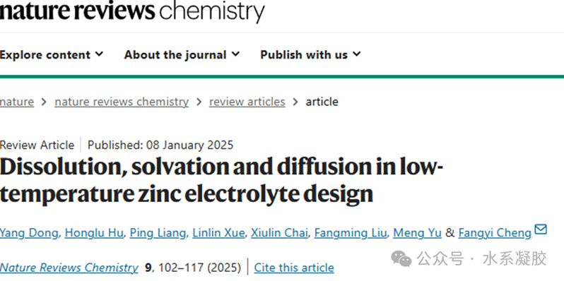程方益教授Nat. Rev. Chem. : 低温锌电解液设计中的溶解、溶剂化和扩散